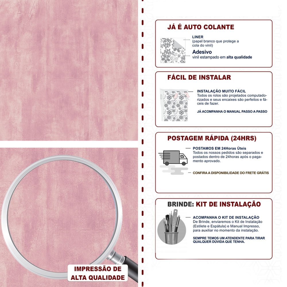 Para garantir que ele dure muito tempo, aplique sempre em superfícies lisinhas, limpas e bem secas. Evite colocar em áreas com contato direto com água ou onde bate muito sol.