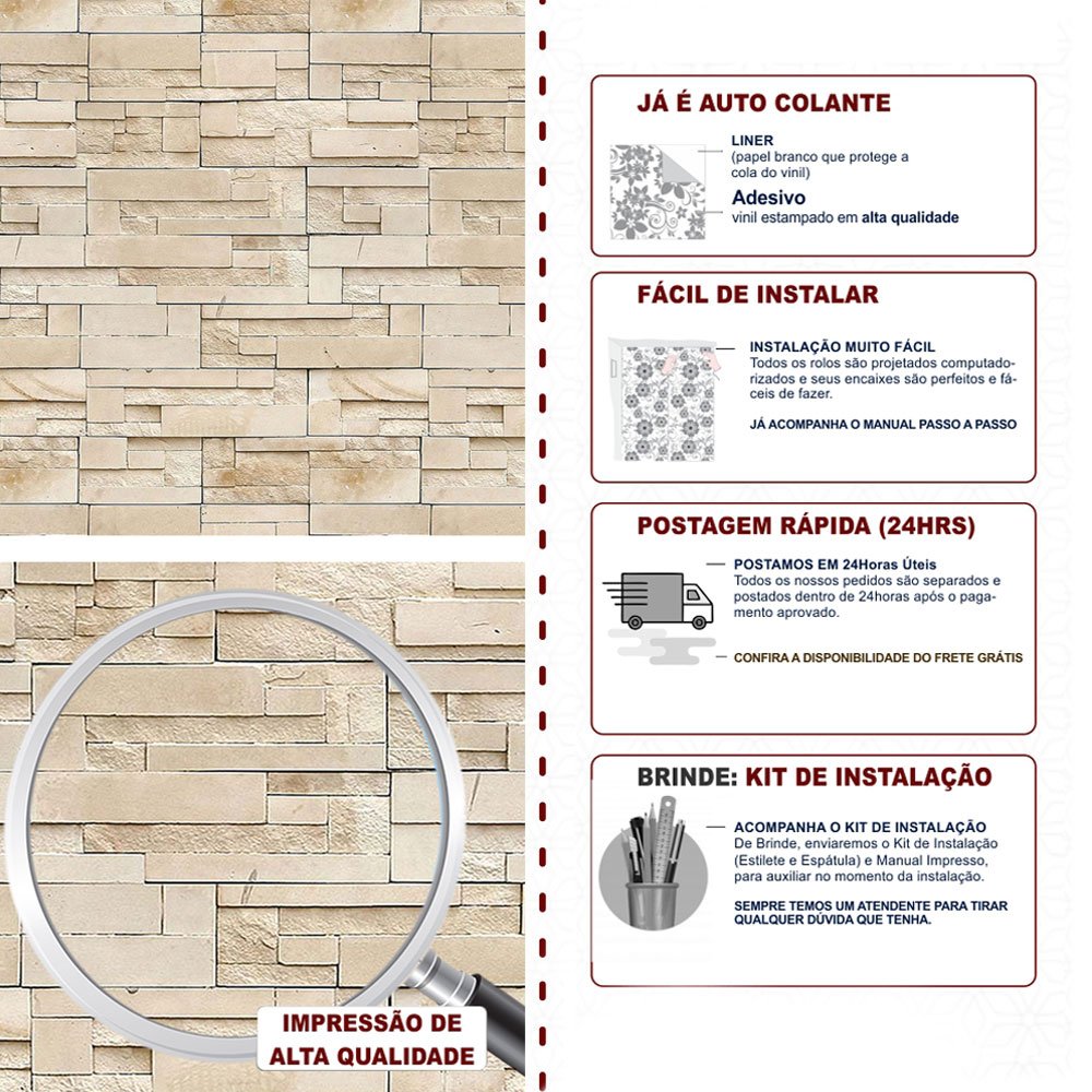 Para garantir que ele dure muito tempo, aplique sempre em superfícies lisinhas, limpas e bem secas. Evite colocar em áreas com contato direto com água ou onde bate muito sol.