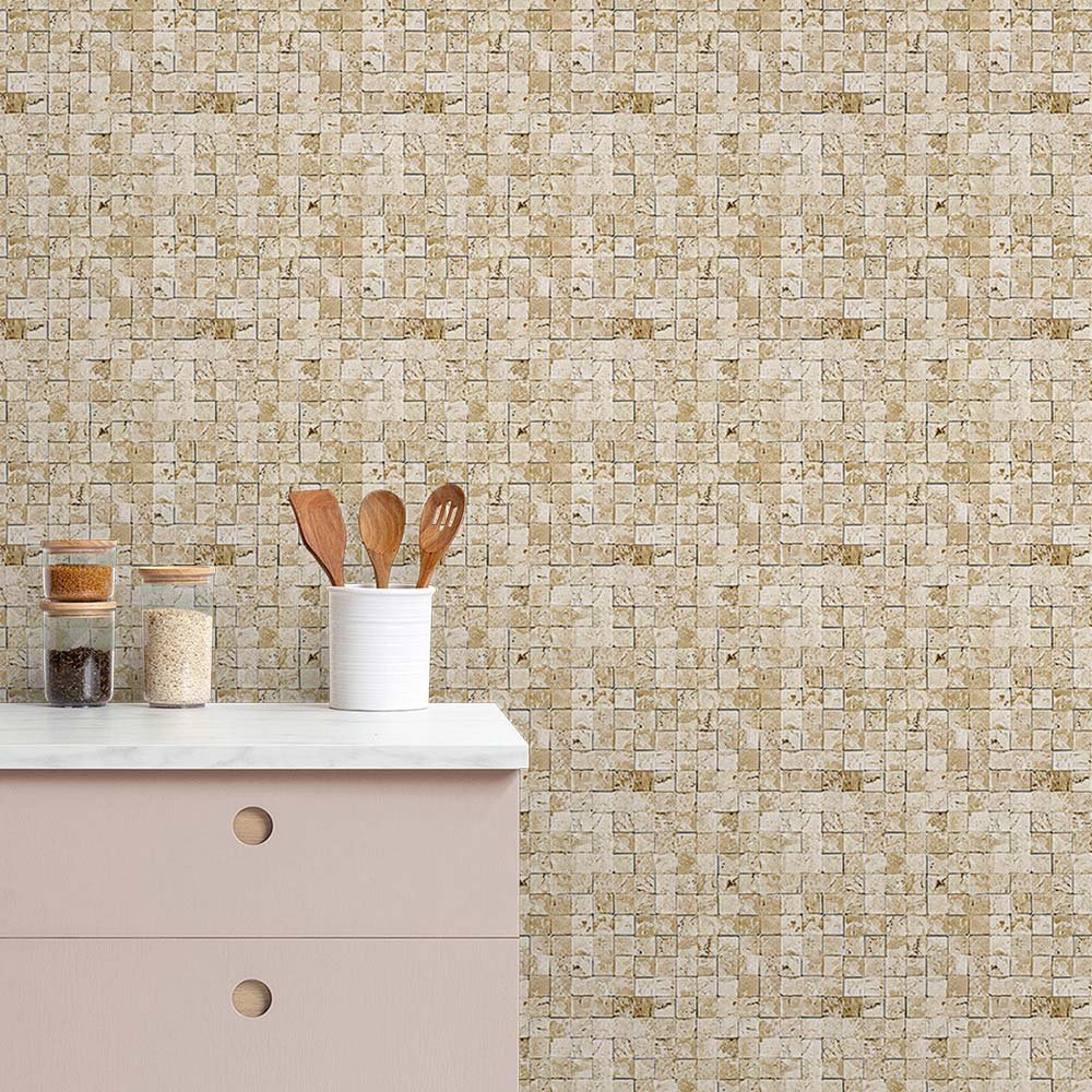 Papel de Parede Mosaico de Pedras Naturais Bege