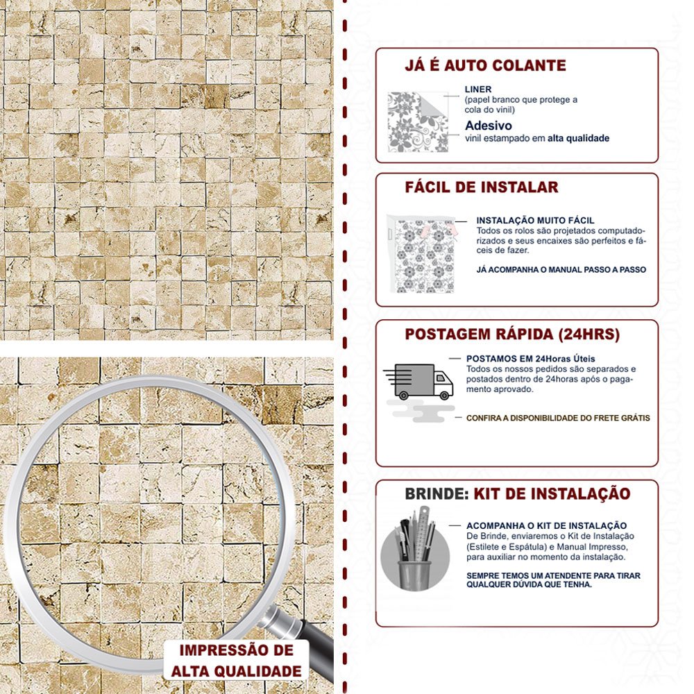 Para garantir que ele dure muito tempo, aplique sempre em superfícies lisinhas, limpas e bem secas. Evite colocar em áreas com contato direto com água ou onde bate muito sol.