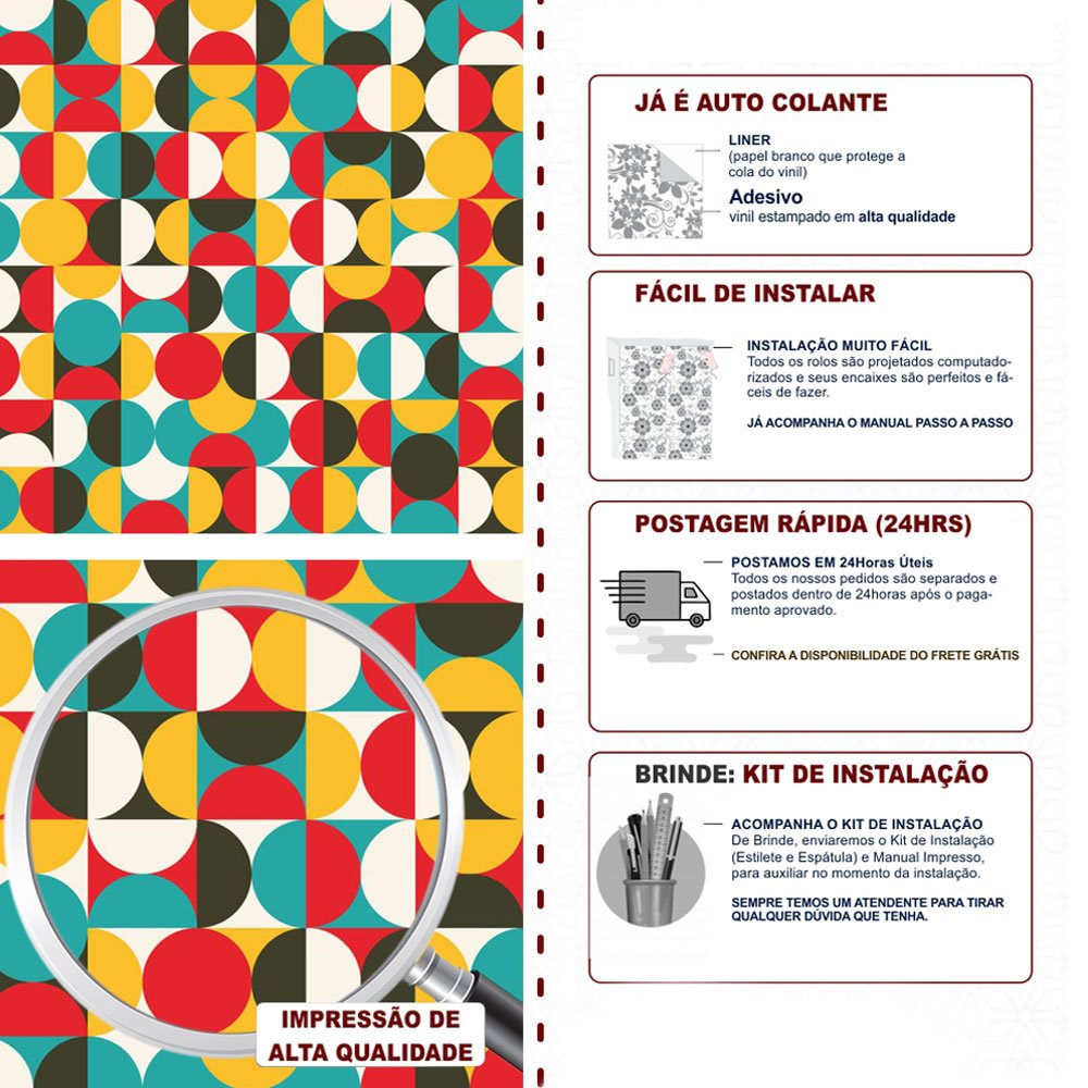 Para garantir que ele dure muito tempo, aplique sempre em superfícies lisinhas, limpas e bem secas. Evite colocar em áreas com contato direto com água ou onde bate muito sol.