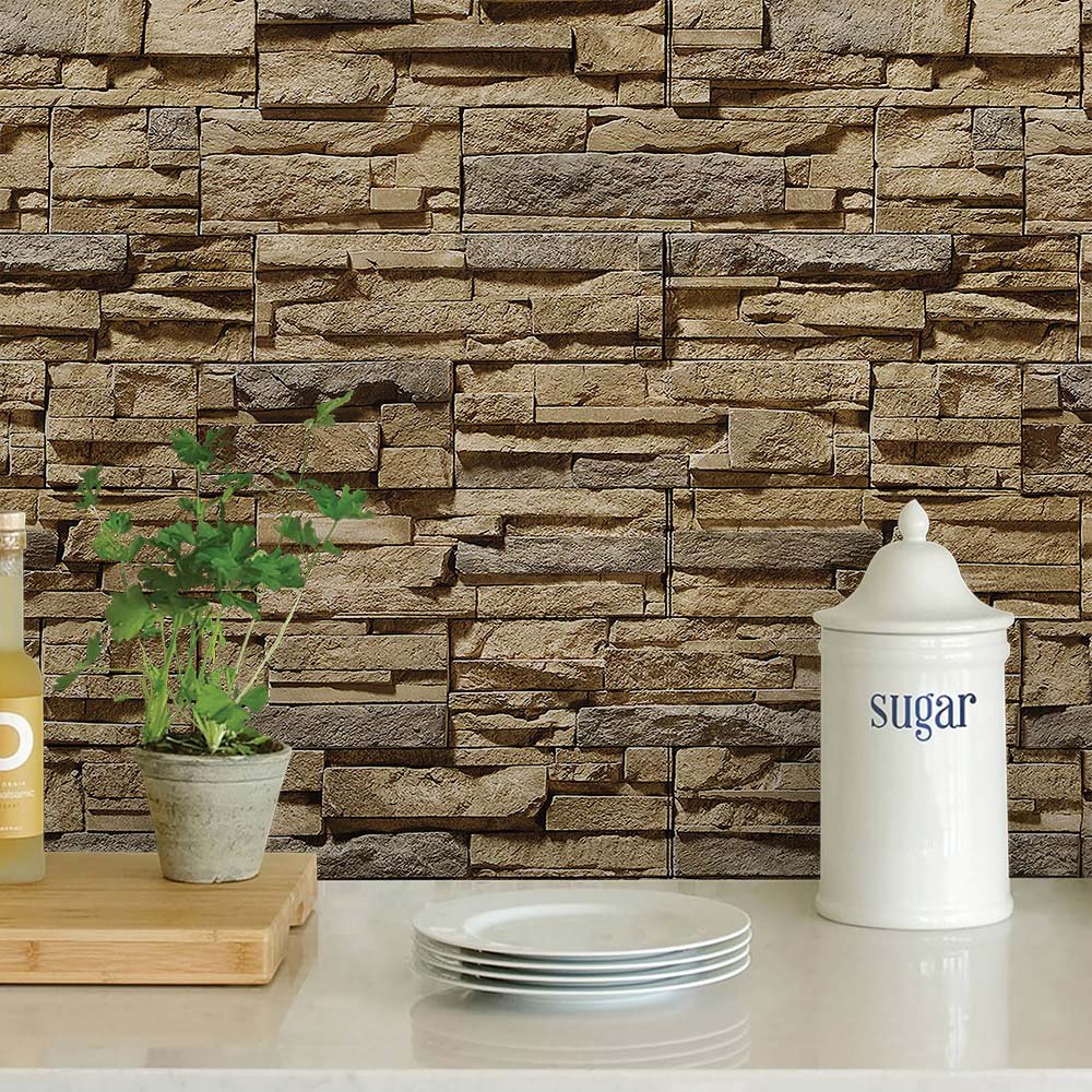 Papel de Parede Pedras canjiquinha com acabamento natural e tonalidades quentes