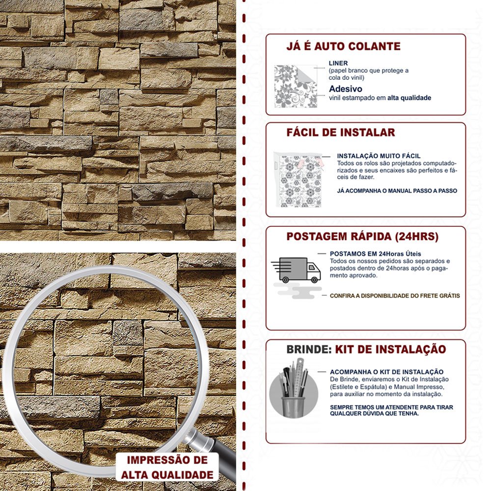 Para garantir que ele dure muito tempo, aplique sempre em superfícies lisinhas, limpas e bem secas. Evite colocar em áreas com contato direto com água ou onde bate muito sol.