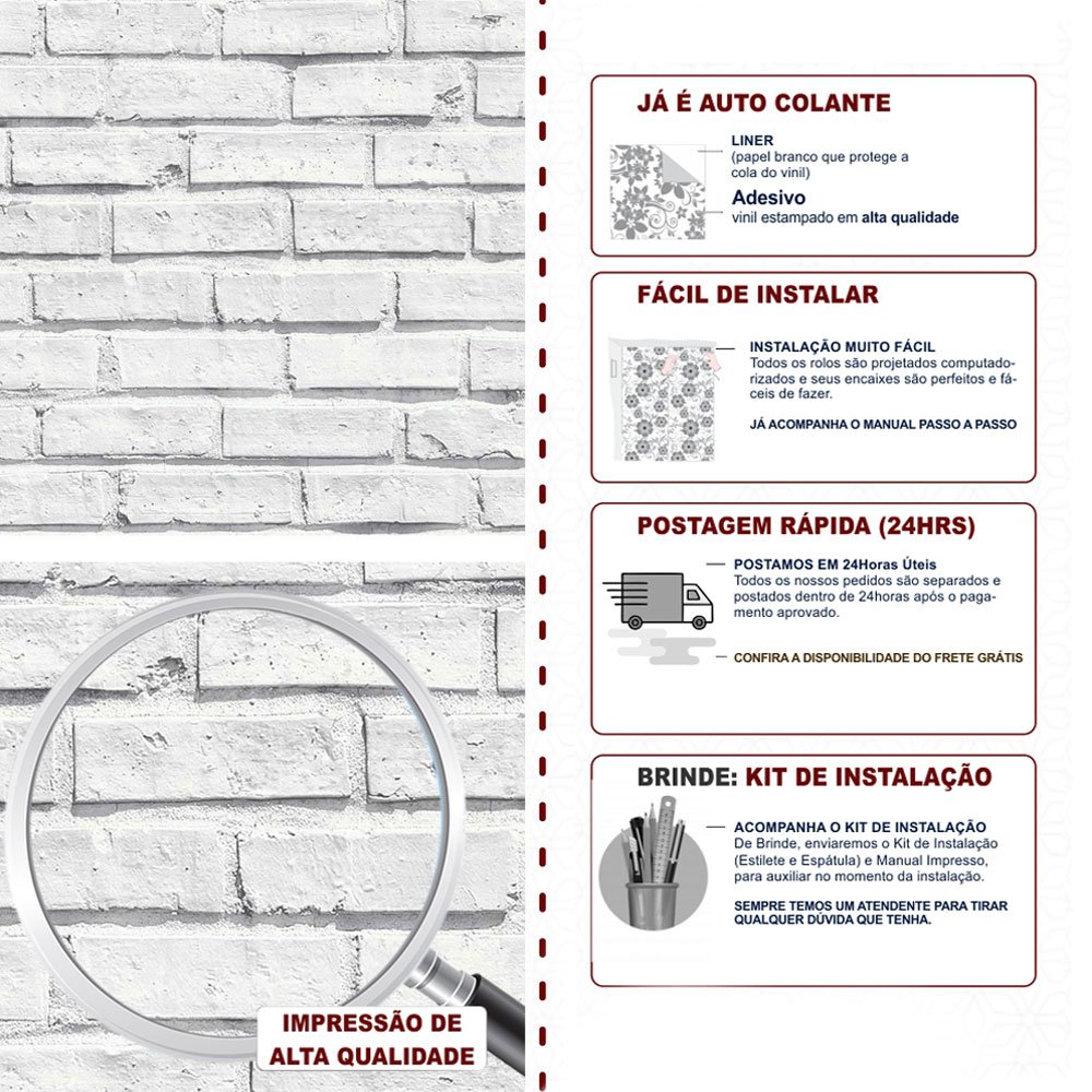 Para garantir que ele dure muito tempo, aplique sempre em superfícies lisinhas, limpas e bem secas. Evite colocar em áreas com contato direto com água ou onde bate muito sol.