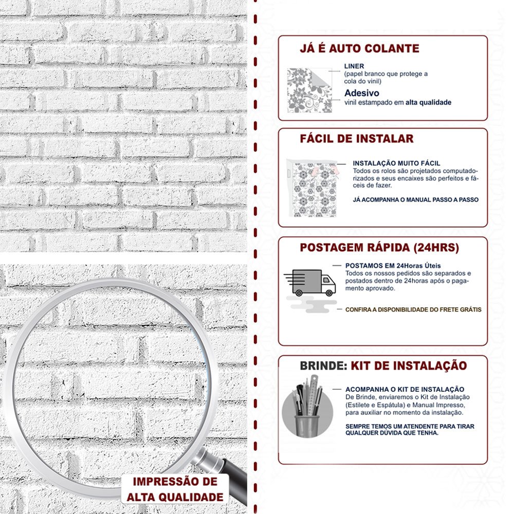 Para garantir que ele dure muito tempo, aplique sempre em superfícies lisinhas, limpas e bem secas. Evite colocar em áreas com contato direto com água ou onde bate muito sol.