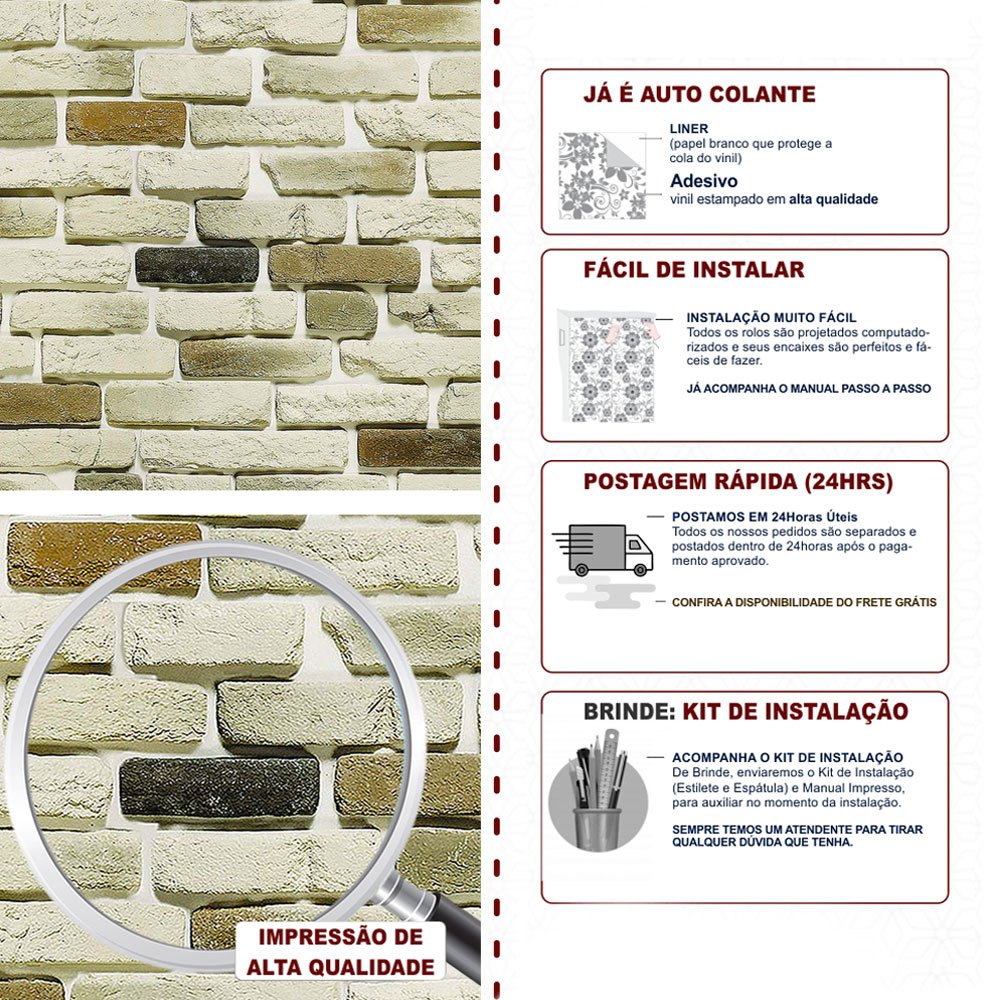 Para garantir que ele dure muito tempo, aplique sempre em superfícies lisinhas, limpas e bem secas. Evite colocar em áreas com contato direto com água ou onde bate muito sol.