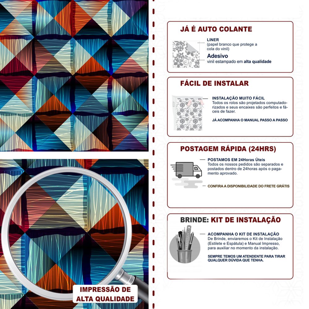 Para garantir que ele dure muito tempo, aplique sempre em superfícies lisinhas, limpas e bem secas. Evite colocar em áreas com contato direto com água ou onde bate muito sol.