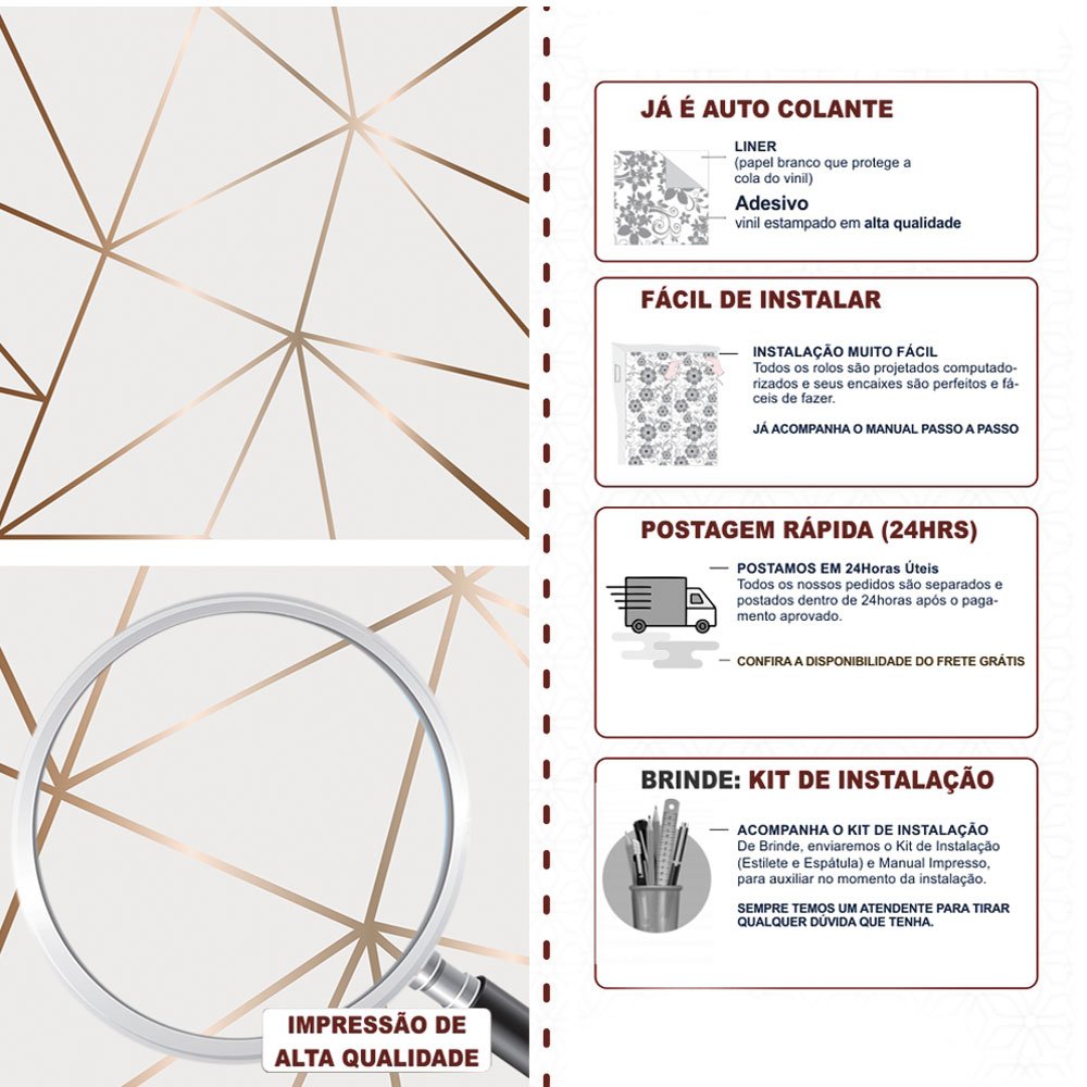 Preparamos e embalamos seu papel de parede com muito cuidado para que ele chegue perfeito até você. O prazo de entrega pode variar conforme a sua região, mas fique tranquila: você pode acompanhar tudo direitinho pelo seu e-mail. 💌