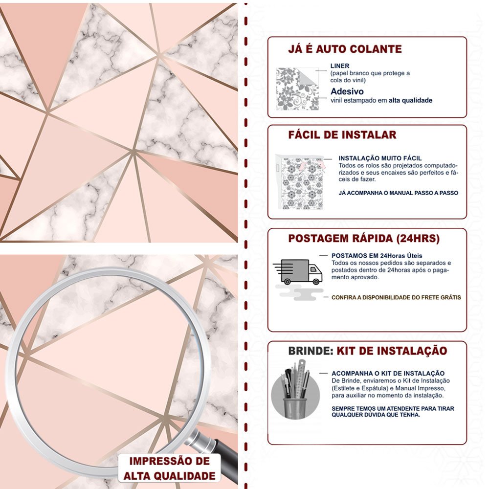 Para garantir que ele dure muito tempo, aplique sempre em superfícies lisinhas, limpas e bem secas. Evite colocar em áreas com contato direto com água ou onde bate muito sol.