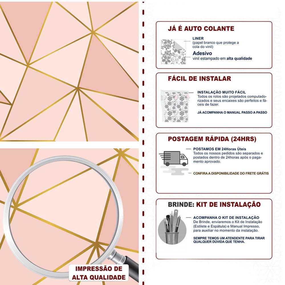Preparamos e embalamos seu papel de parede com muito cuidado para que ele chegue perfeito até você. O prazo de entrega pode variar conforme a sua região, mas fique tranquila: você pode acompanhar tudo direitinho pelo seu e-mail. 💌